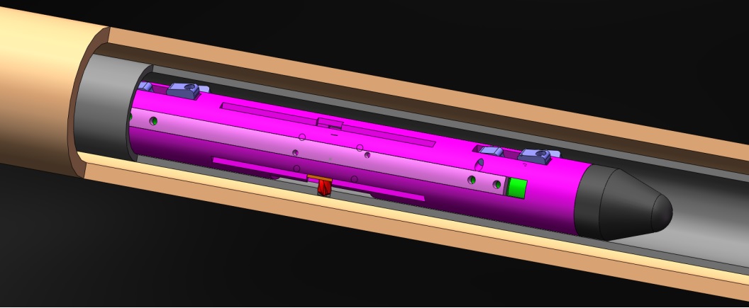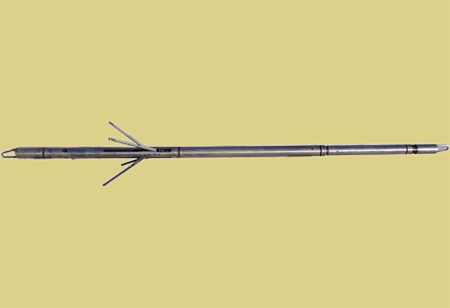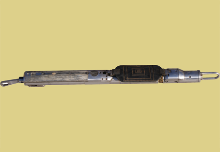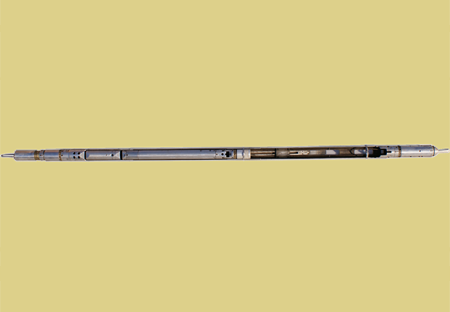 液壓推靠器配接能譜密度與微球復(fù)合探頭,使其貼靠井壁以滿足測…
